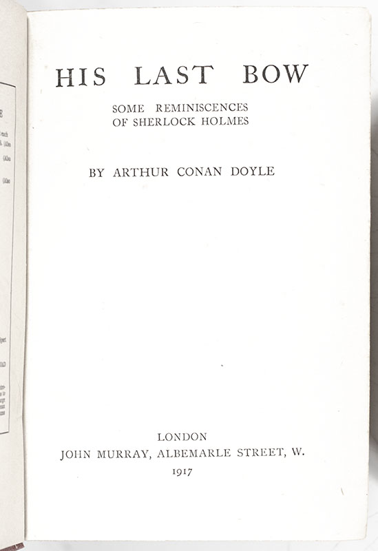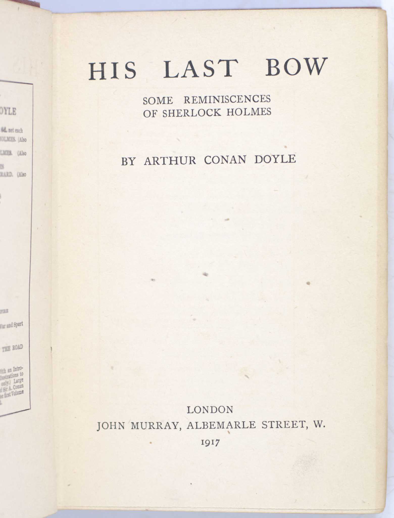 First Edition of Arthur Conan Doyle's His Last Bow: Some Reminiscences of Sherlock Holmes