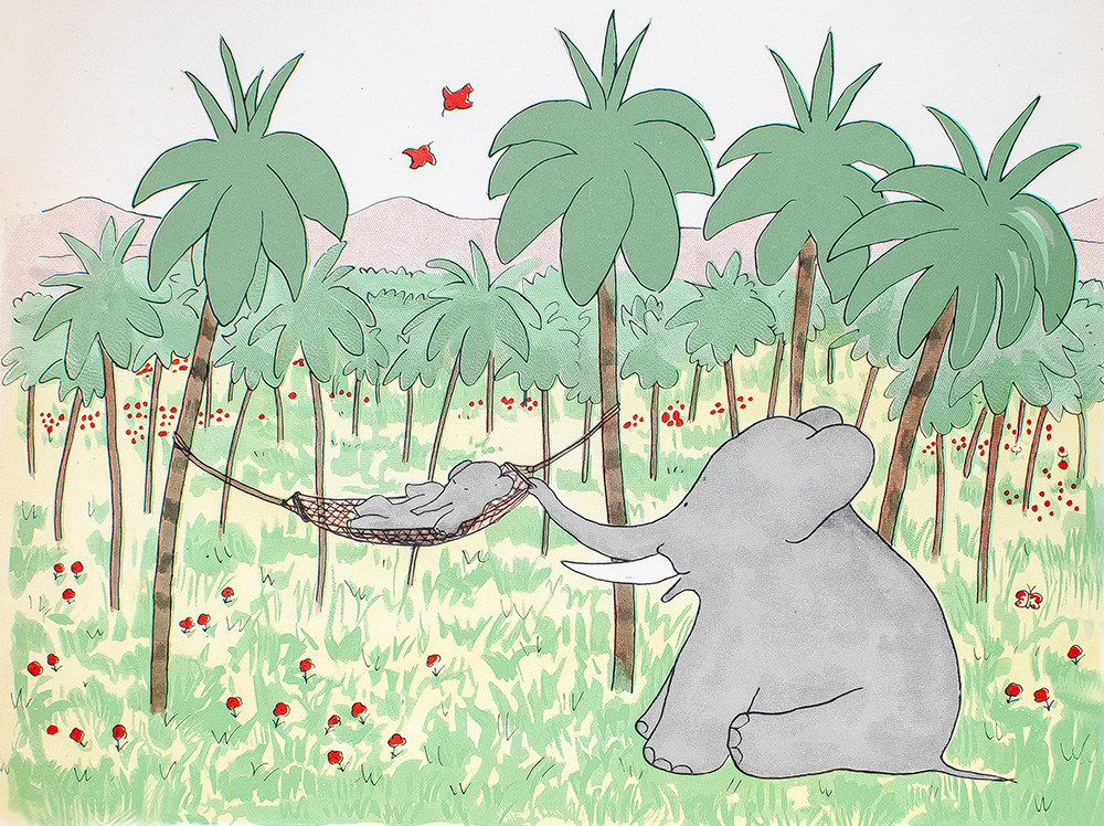 Based on a story de Brunhoff's wife created for their children, The Story of Babar was born. It is the tale of a young elephant who escapes a hunter in his native jungle and comes to appreciate the civilization and fine things of the big city. He later returns to the jungle where he is crowned King of the Elephant Kingdom for the wisdom and civility he has gained in his travels. The book enjoyed immediate success upon publication and de Brunhoff went on to publish six more stories in the series before his death in 1937. His son, Laurent de Brunhoff, carried on the series and it was made into an animated television series in Canada which ran a total of 65 episodes between 1889 and 1991. "Like an extravagant piece of poetry, the interplay between few words and many pictures, commonly called the picture book, is a difficult, exquisite, and most easily collapsible form that few have mastered....Jean de Brunhoff was a master of this form. Between 1931 and 1937 he completed a body of work that forever changed the face of the illustrated book" (Maurice Sendak).
