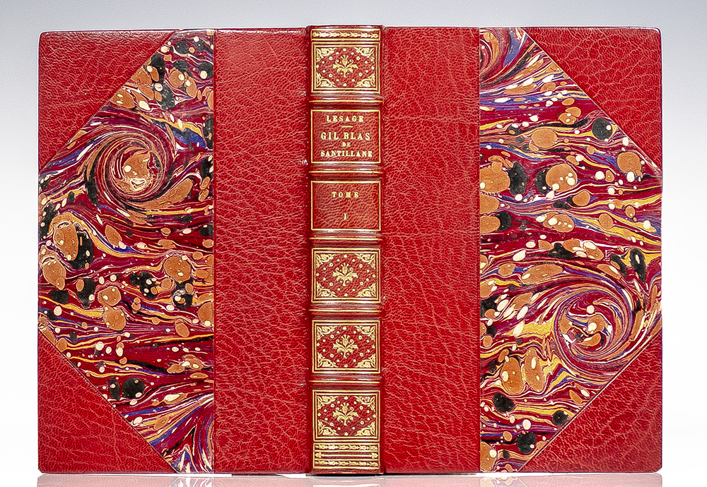 Finely bound example of Lesage's famed picaresque novel. Octavo, four volumes bound in three quarter crushed levant morocco over marbled boards with gilt titles and tooling to the spine in six compartments within raised gilt bands, top edge gilt, marbled endpapers, illustrated with engravings by the best artists of Paris. In fine condition. A beautiful set.
