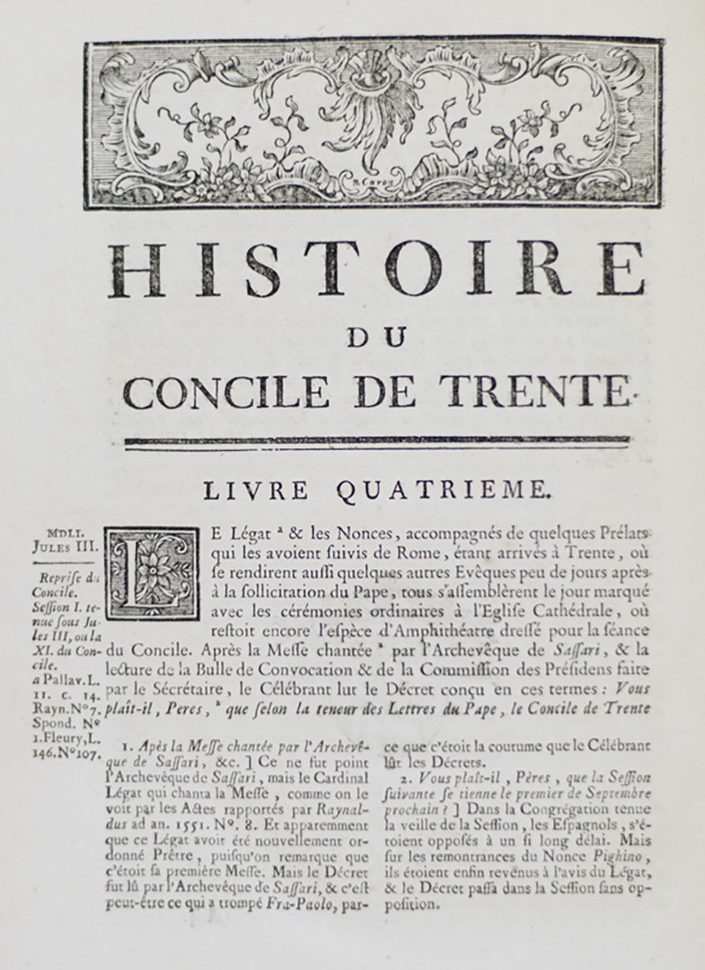Histoire Du Concile De Trente, écrite en italienne par Fra-Paolo Sarpi, de l'Ordre des Servites; et trauit de nouveau en français, avces des notes critiques, historiques et theologiques, par Pierre-François Le Courayer.