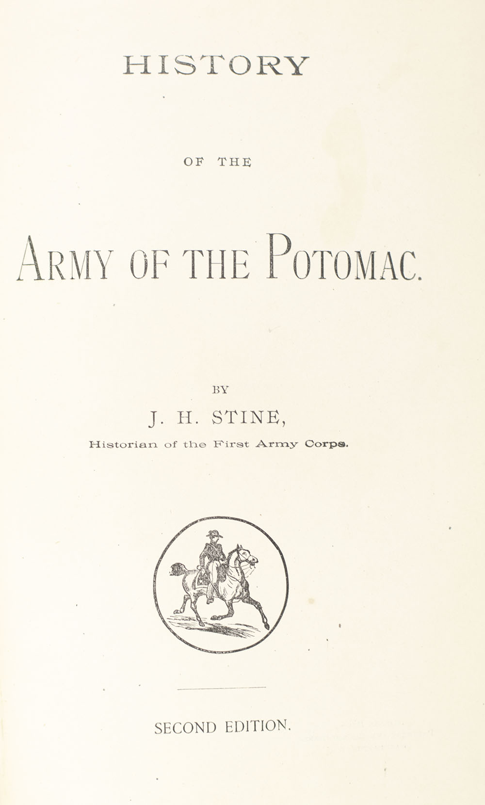 J.H. Stine's History of the Army of the Potomac; inscribed by him
