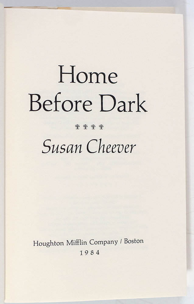 First edition of Susan Cheever's Home Before Dark; inscribed by her to Ken Burrows