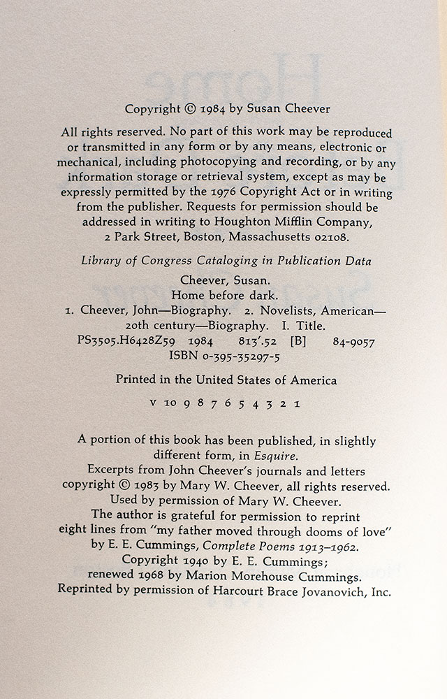Home Before Dark: A Biographical Memoir of John Cheever by His Daughter.