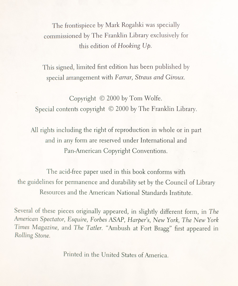 First signed limited edition of Tom Wolfe's Hooking Up