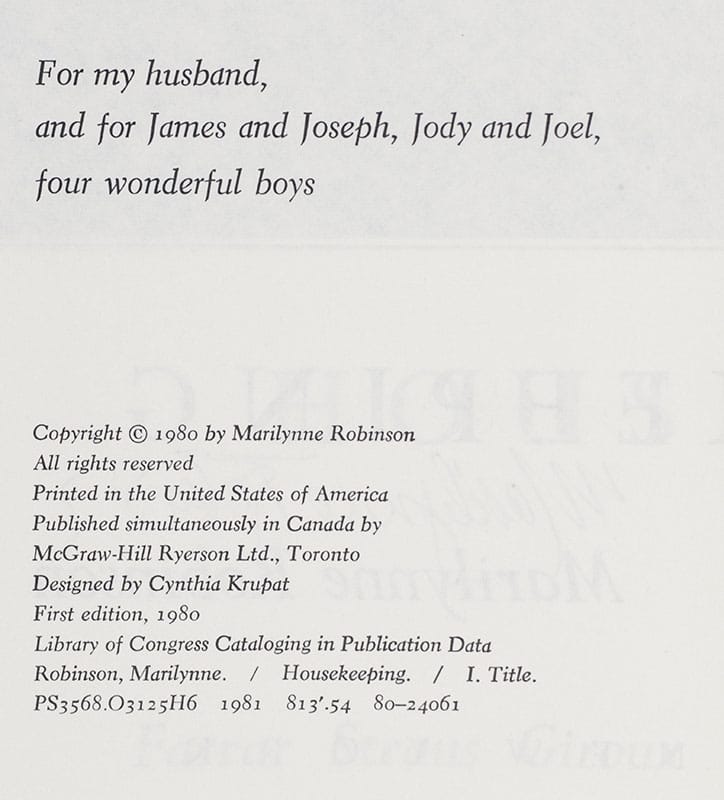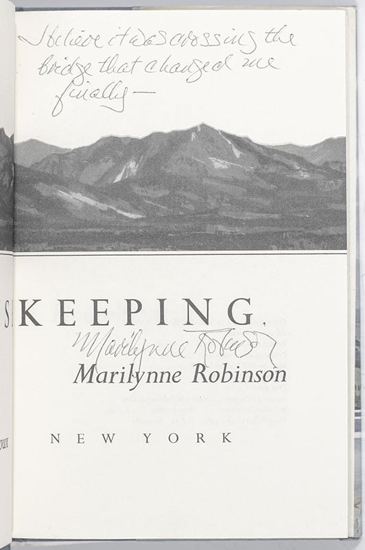 "I believe it was crossing the bridge that changed me finally": First Edition Of The Authors First Book Housekeeping; Signed By Marilynne Robinson