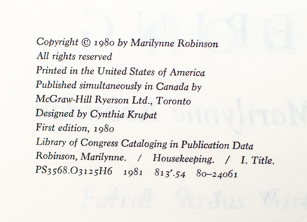 "I believe it was crossing the bridge that changed me finally": First Edition Of The Authors First Book Housekeeping; Signed By Marilynne Robinson