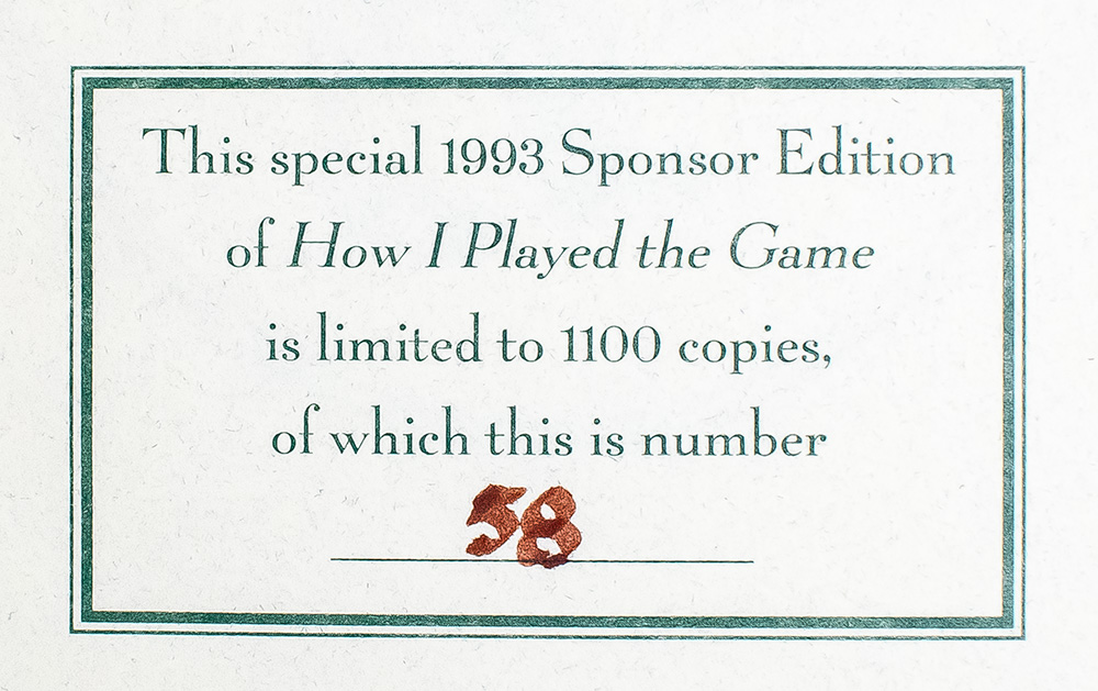 First Special 1993 Sponsor Edition of How I Played The Game; Signed by Byron Nelson