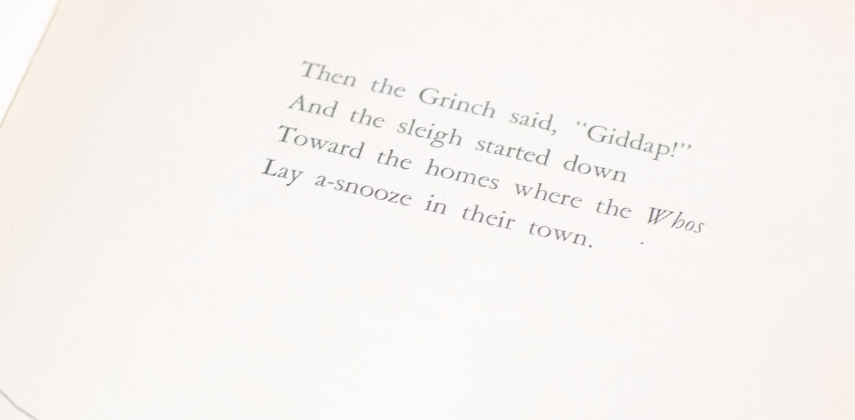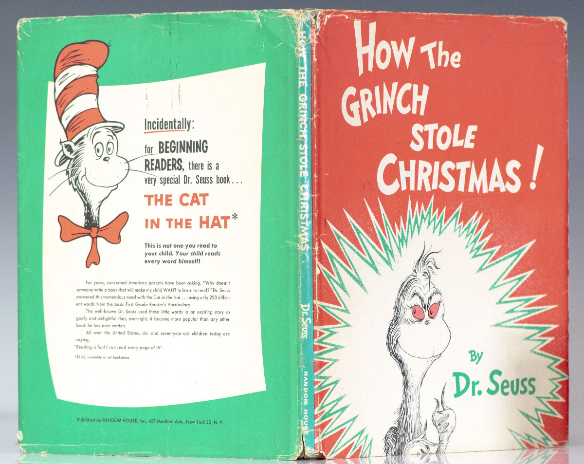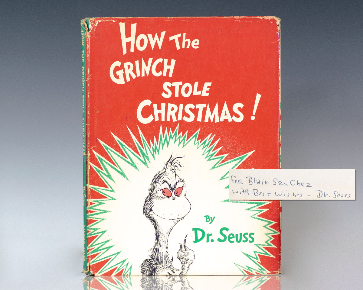 "Welcome Christmas. Bring your cheer, Cheer to all Whos, far and near”: FIRST EDITION OF DR. SEUSS'S HOW THE GRINCH STOLE CHRISTMAS!; Inscribed by Him