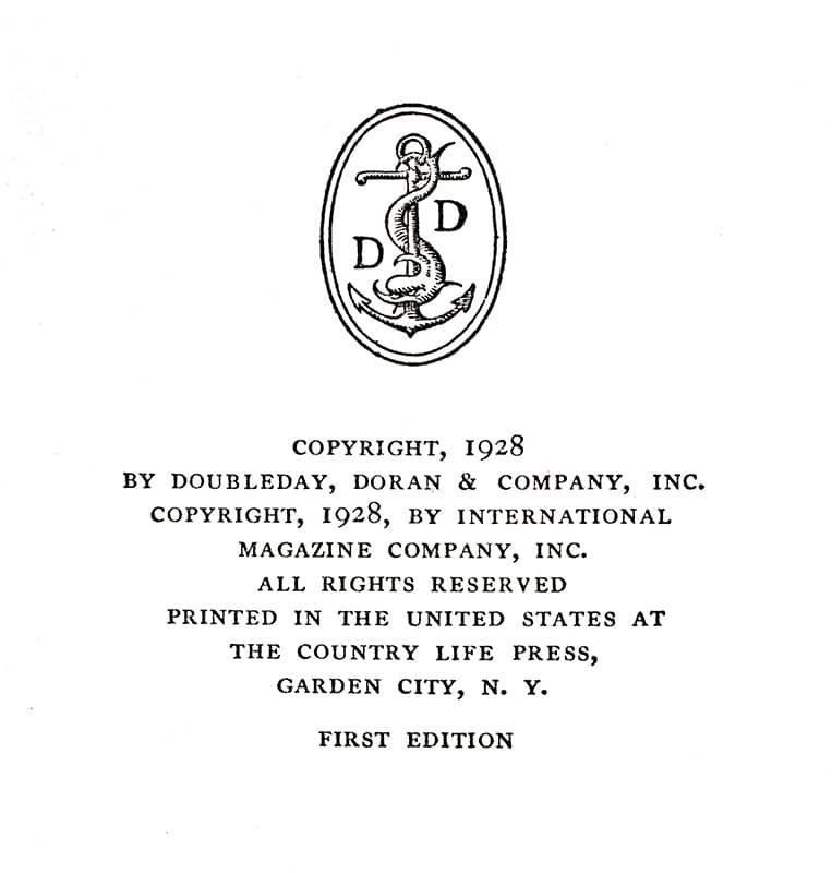 Garden City, NY: Doubleday, Doran & Company, Inc, 1928.