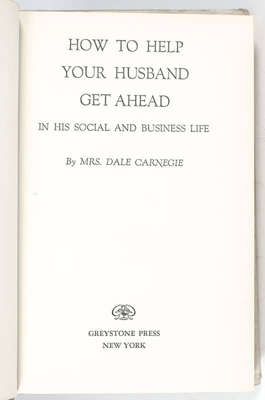 "The wife who wants her husband to succeed must develop more of the hardy spirit of our pioneers": First edition of Dorothy Carnegie's How To Help Your Husband Get Ahead in His Social and Business Life; signed by her