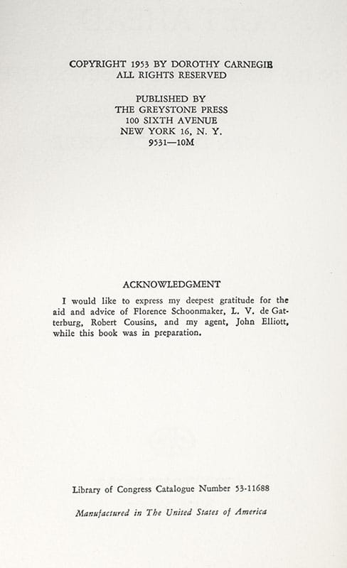 First edition of Dorothy Carnegie's essential 1953 guide for the housewife, offering practical advice to help the husband succeed in the style of her husband, Dale Carnegie's How to Win Friends and Influence People. Octavo, original cloth. Signed by Dorothy Carnegie on the front free endpaper. Near fine in the original dust jacket which is in very good condition. Uncommon signed.