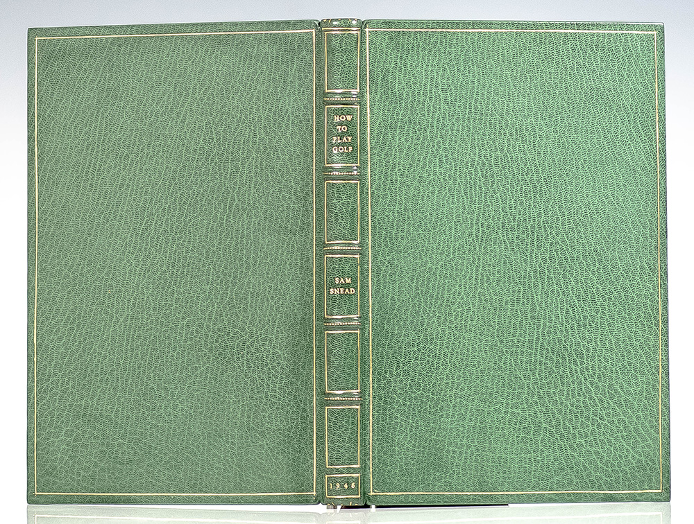 First edition of the golfing legend’s first book. Octavo, bound in full morocco by the Harcourt Bindery, gilt titles and tooling to the spine in six compartments within raised gilt bands, gilt ruling to the front and rear panels, gilt inner dentelles stamp-signed by the Harcourt Bindery, marbled endpapers, all edges gilt. In fine condition. An exceptional presentation.