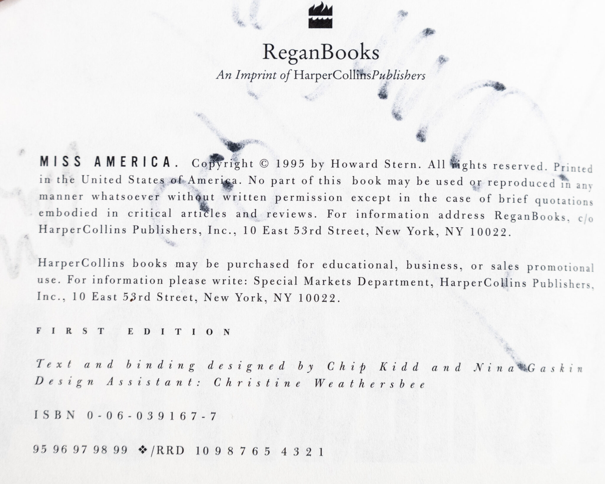 First Edition of Howard Stern: Miss America; Signed by Him and Three Times by Legendary Designer Chip Kidd in the Year of Publication