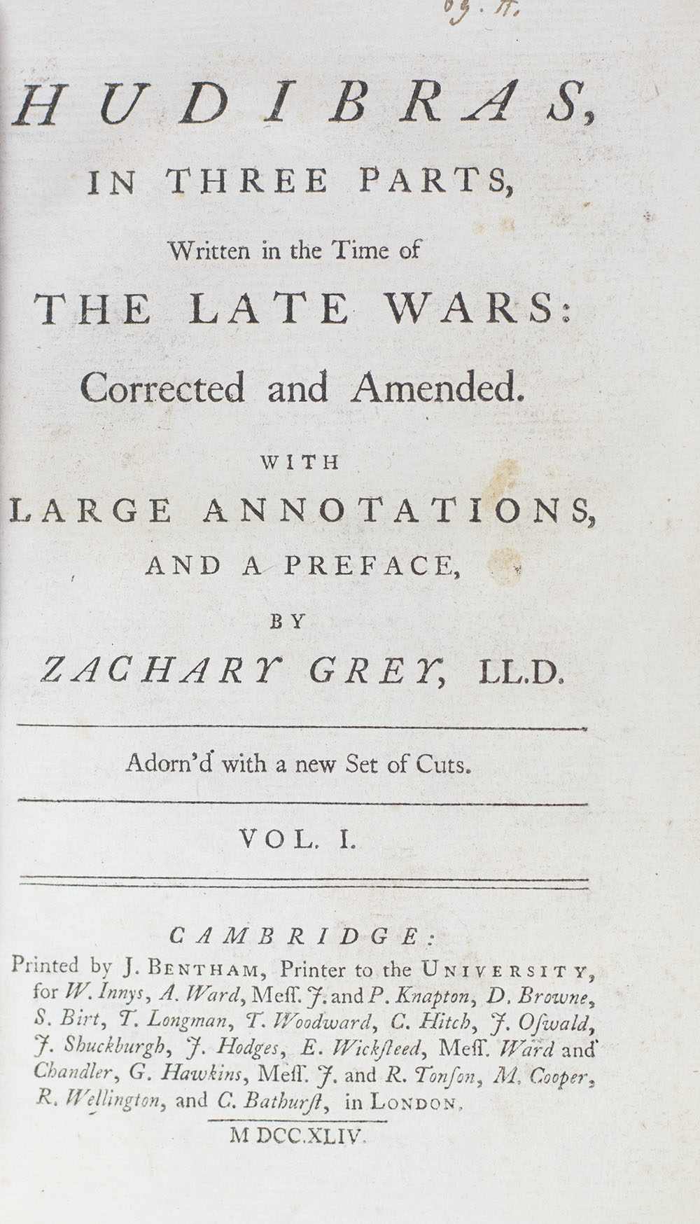 Hudibras, In Three Parts, Written in the Time of The Late Wars: Corrected and Amended. With Large Annotations, and a Preface, by Zachary Grey, L.L.D. Adorn'd with a new Set of Cuts.