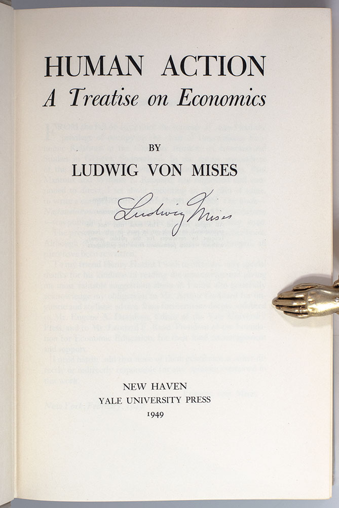 “thinking is always thinking of a potential action": First Edition of Human Action: A Treatise On Economics; Signed by Ludwig Von Mises