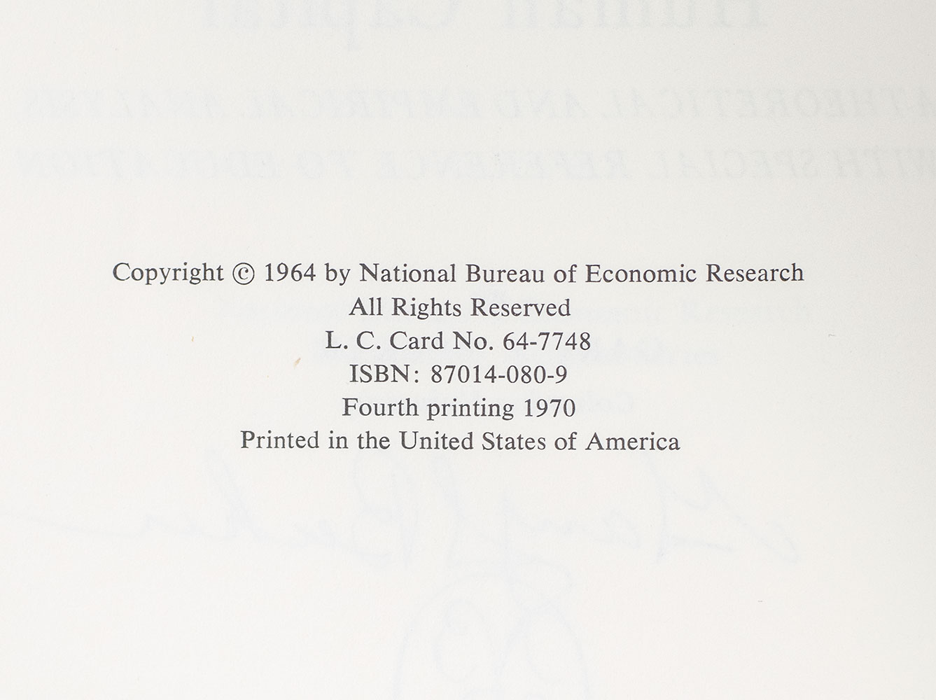 GARY BECKER’S CLASSIC WORK HUMAN CAPITAL; SIGNED BY HIM