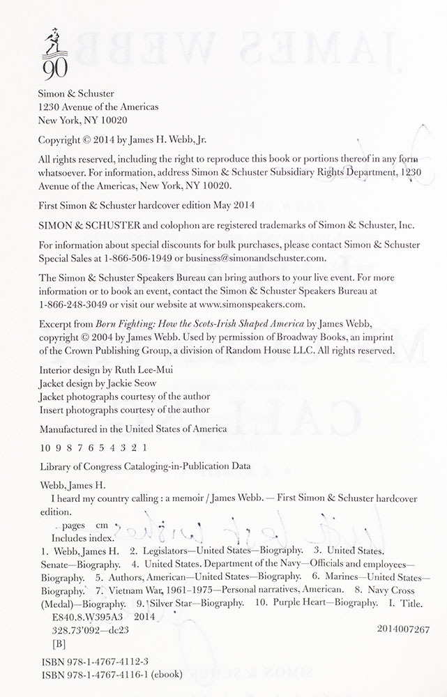 First Edition of James Webb's I Heard My Country Calling; Inscribed by Him