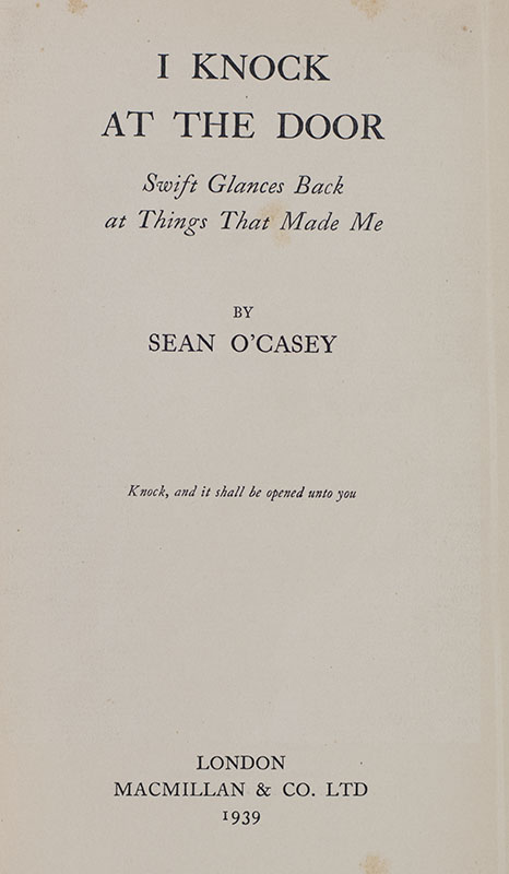 "Knock, and it shall be opened unto you": First Edition of Sean O'Casey's I Knock At The Door