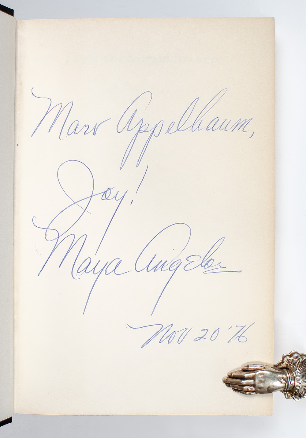 First edition, early printing of Angelou's critically acclaimed first book. Octavo, original cloth. Presentation copy, inscribed by the author on the front free endpaper, "Marv Appelbaum Joy! Maya Angelou Nov 20 '76." Fine in a fine dust jacket. Jacket design by Janet Halverson. An exceptional example.