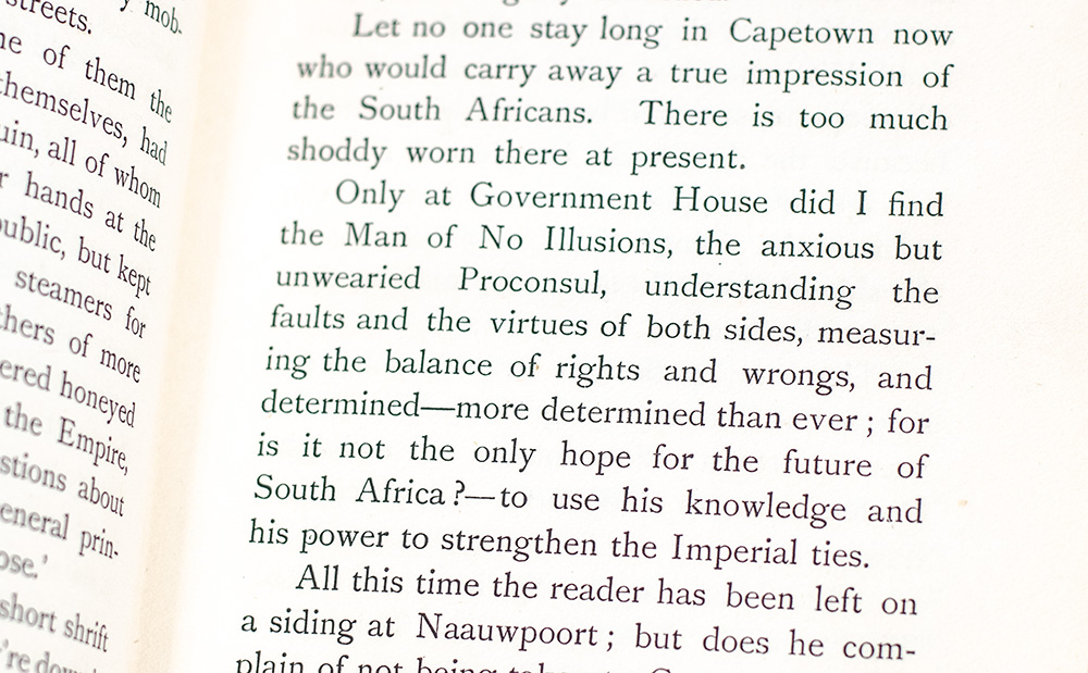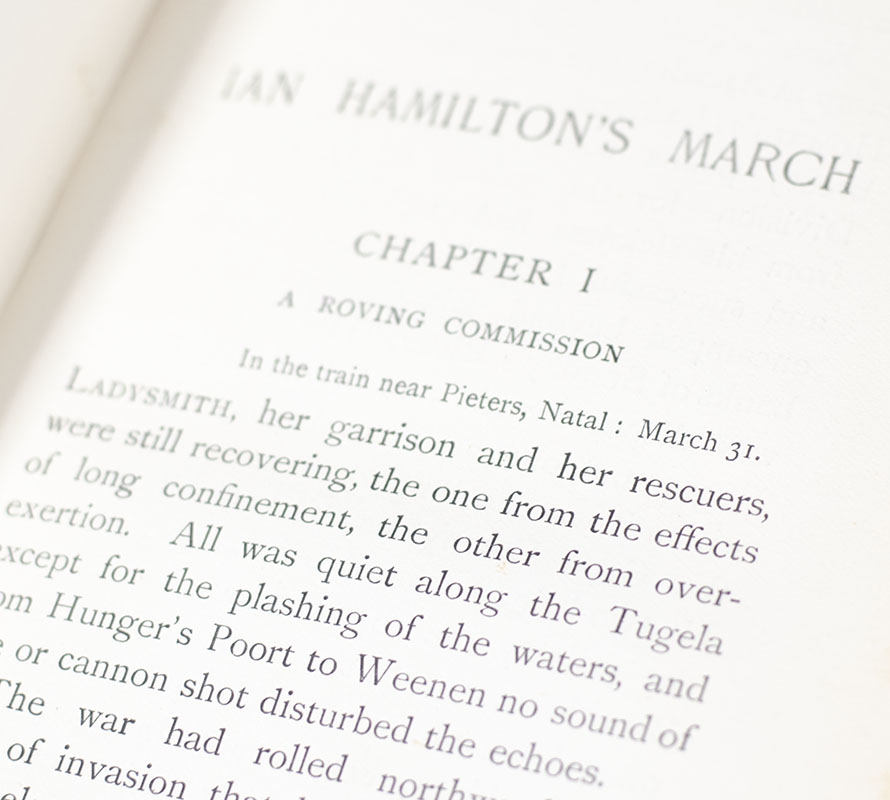 The sequel to Churchill's popular London to Ladysmith via Pretoria, Ian Hamilton's March "describes the fighting march of Ian Hamilton's mounted division from Bloemfontein to Johannesburg (Churchill rode a bicycle into 'Jo'burg' a day before the army arrived) and on to Pretoria, where the author was able to help liberate his former fellow prisoners" (Langworth, 58). The work consists of 17 letters Churchill published as a Morning Post correspondent; "in contrast to London to Ladysmith, the texts of the originally published letters were more extensively revised and four letters were included which had never appeared in periodical form" (Cohen A8.1.a).