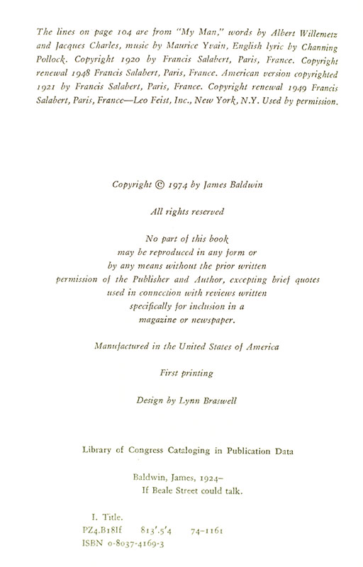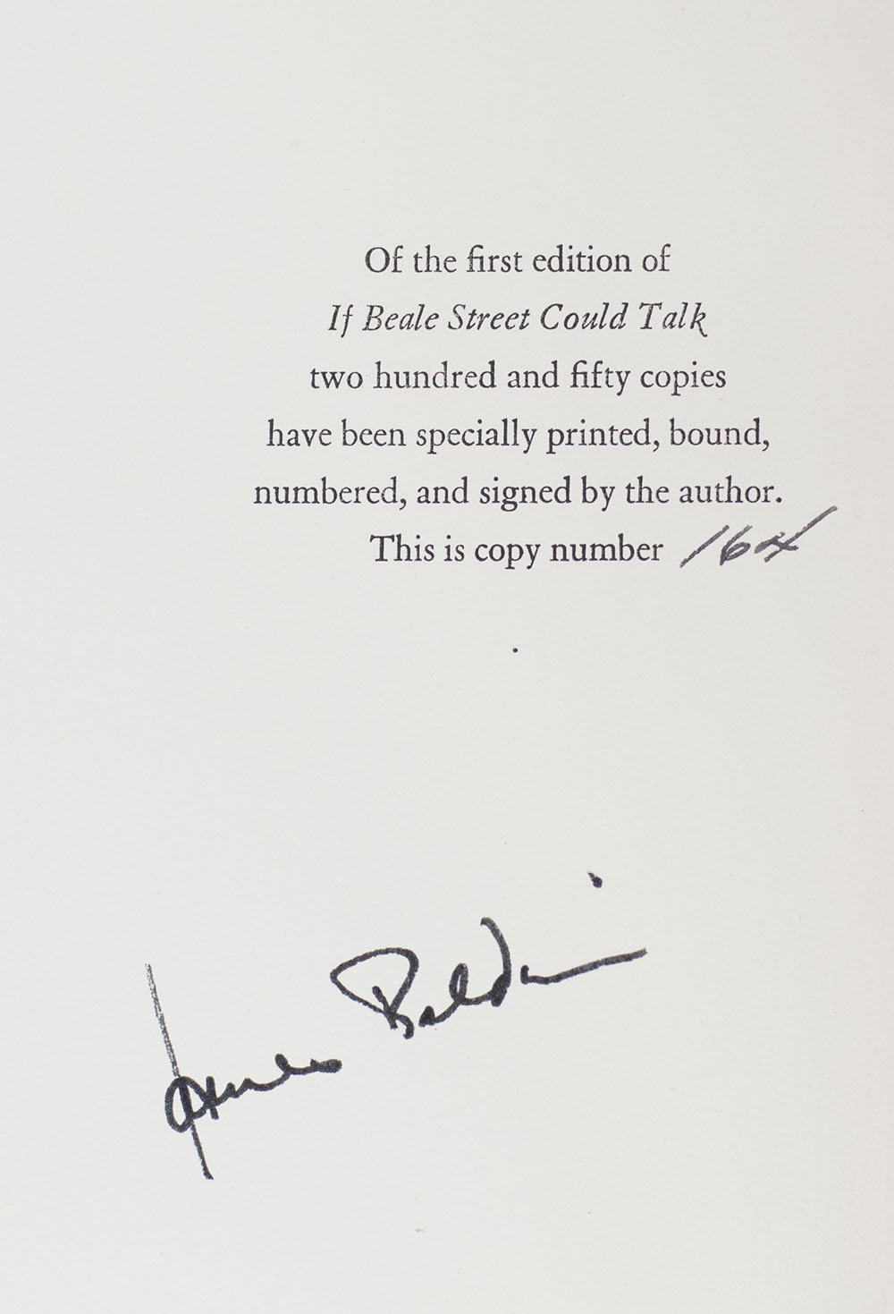 “Neither love nor terror makes one blind: indifference makes one blind": Signed Limited First Edition of James Baldwin's If Beale Street Could Talk