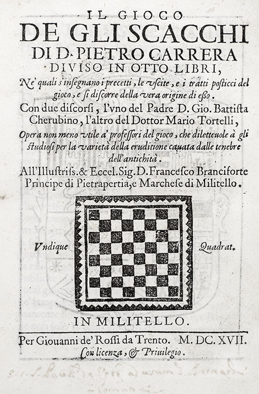 Rare first edition of one of the earliest chess manuals; Pietro Carrera's Game of Chess