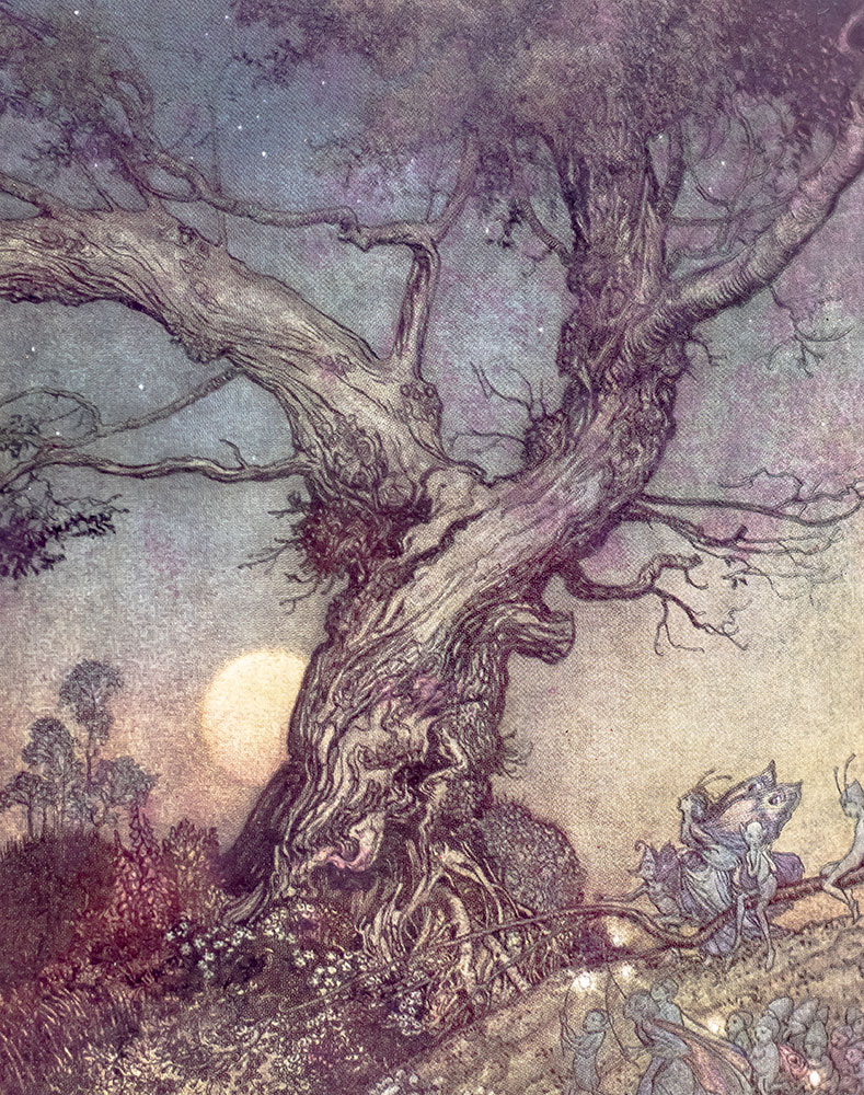 One of the leading literary figures during the Golden Age of British book illustration, Arthur Rackham's work is noted for its robust pen and ink drawings, which were combined with the use of watercolor, a technique he developed due to his background as a journalistic illustrator. "Arthur Rackham’s fanciful imagination gave his illustrations instant recognition, and his dedication to illustration kept him in the public eye for 30 years" (Hodnett, 233).
