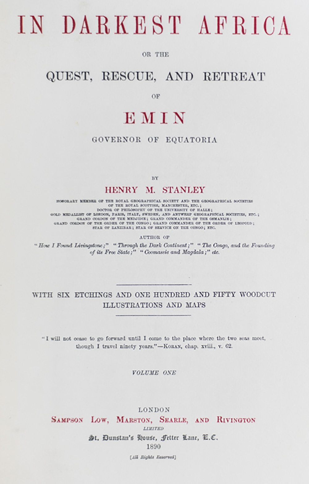 In Darkest Africa or, The Quest, Rescue, and Retreat of Emin, Governor of Equatoria.