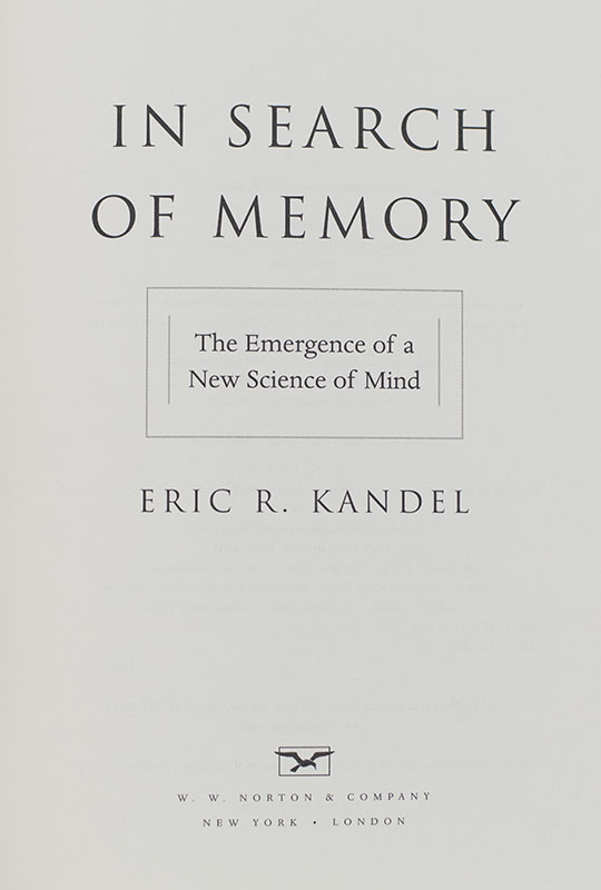 "The brain is a complex biological organ possessing immense computational capability: it constructs our sensory experience, regulates our thoughts and emotions, and controls our actions": First Edition of In Search of Memory; Inscribed by Nobel Prize-winning Scientist Eric Kandel