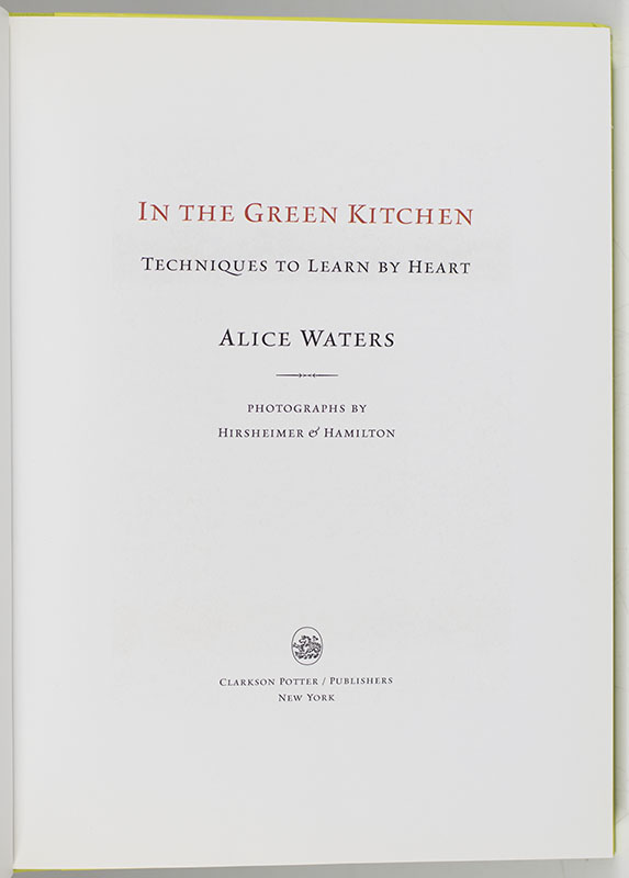 First Edition of Alice Waters' In the Green Kitchen: Techniques To Learn By Heart; Signed by Her