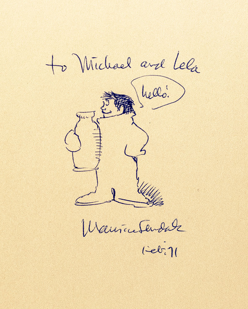 First edition of Sendak's classic work. Quarto, original cloth with illustrated paper cover label, illustrated. Presentation copy, inscribed by the author with a drawing on the front free endpaper, "To Michael and Lela hello! Maurice Sendak Feb. '71." Fine in a fine dust jacket.