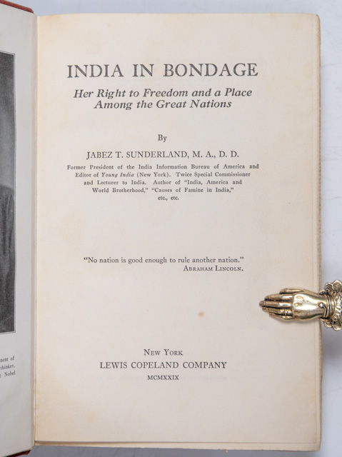 First Edition of Jabez T. Sunderland's India in Bondage; Signed by Mohandas Gandhi, Charlie Chaplin, and Madeleine Slade