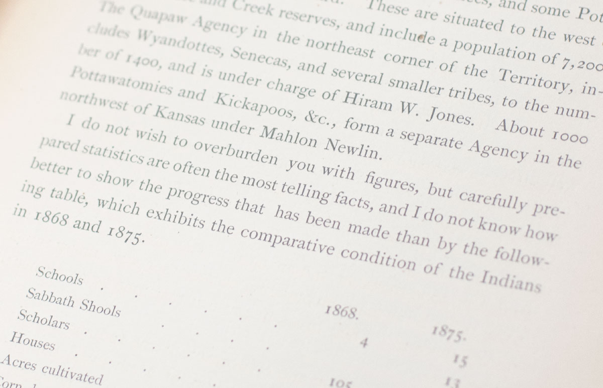 Stanley Pumphrey spent several weeks among the Indian tribes removed to the Indian Territory and Kansas in 1876. Although in conversing with the Indians he found the impression widely prevailing that their prospects were hopeless and that their removal from their ancestral lands was doomed to lead to their extinction, this pro-removal tract offers detailed evidence to the contrary.