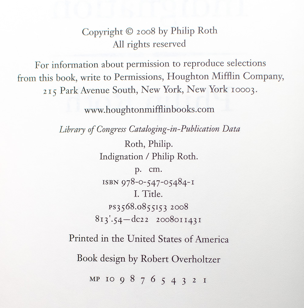 First Edition of Indignation; From the library of Fellow Writer John Barth