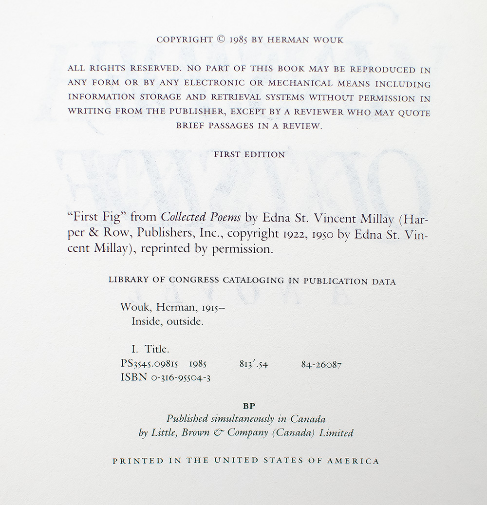 First Edition of Herman Wouk's Inside, Outside