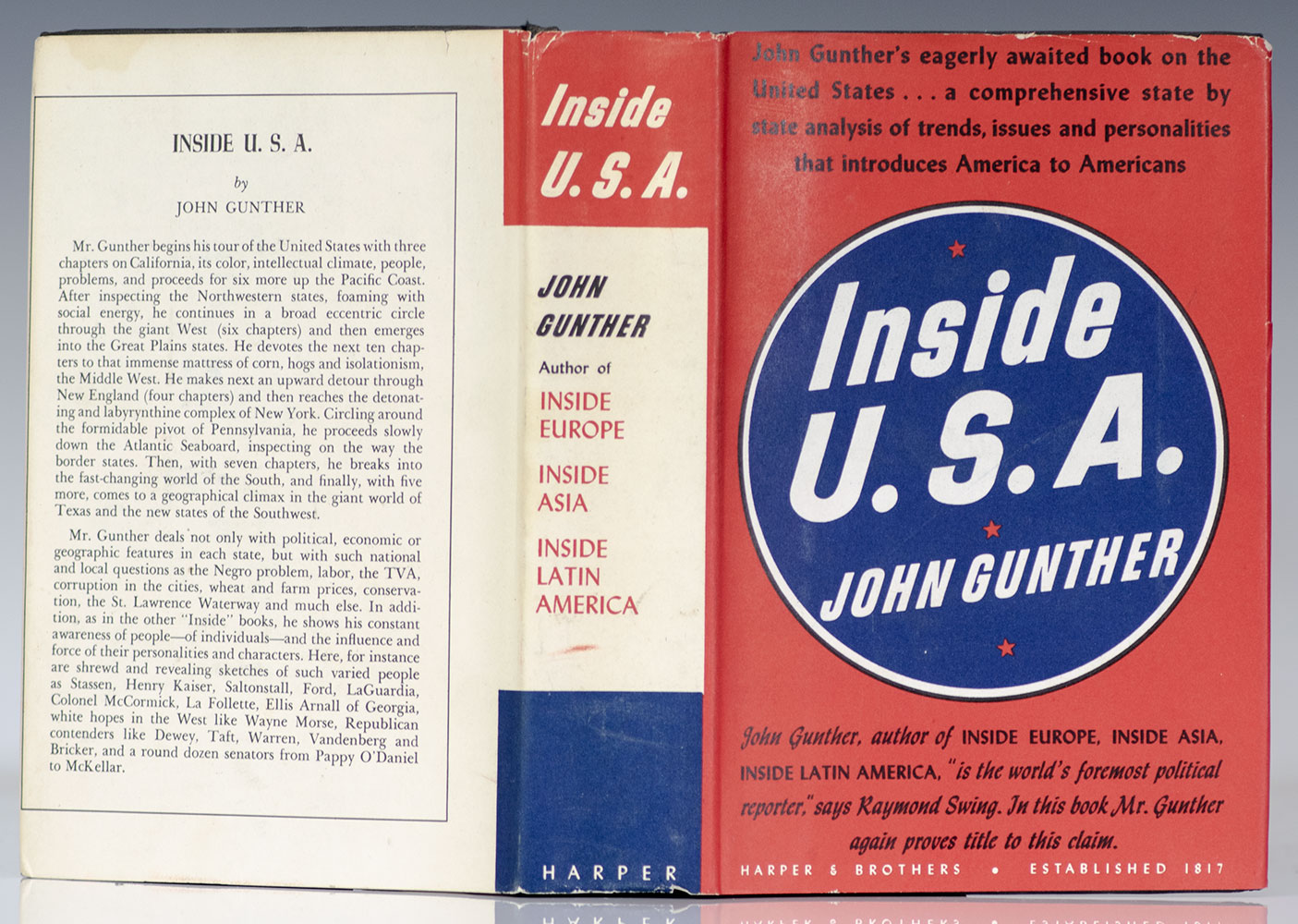 First edition of this classic work, "riveting from start to finish" (Robert Gottlieb, The New York Times). Octavo, original cloth, cartographic endpapers, pullout map. Boldly signed by John Gunther on the half-title page. Near fine in a near fine dust price-clipped jacket. Signed first editions are exceptionally rare.