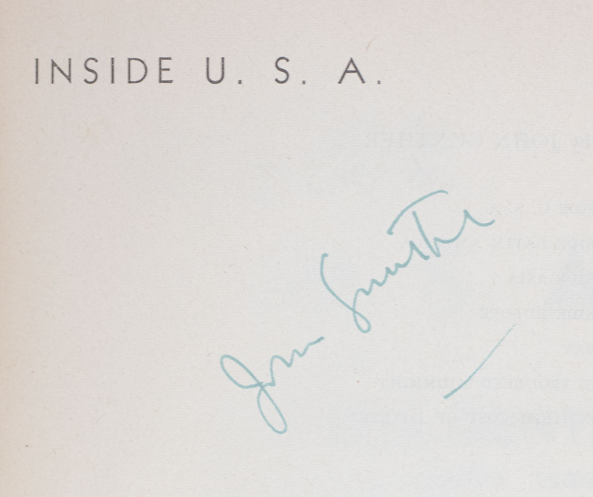 "This country is, I once heard it put, absolutely lousy with greatness" with not only the greatest responsibilities but with the greatest oppurtunities ever known to man": First Edition of Inside U.S.A.; Signed by John Gunther