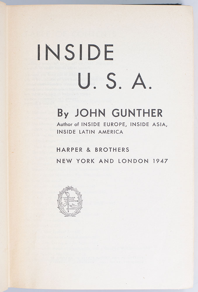 John Gunther's Inside U.S.A.; Signed by Him