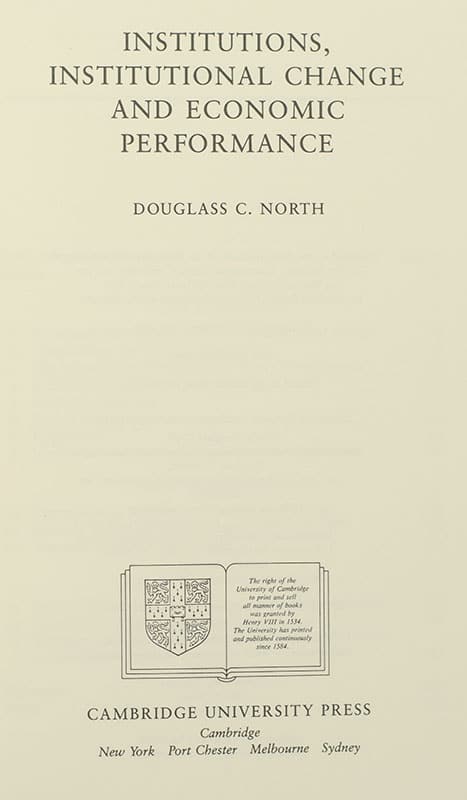 First Edition of Douglass C. North's Institutions, Institutional Change and Economic Performance; Inscribed by Him