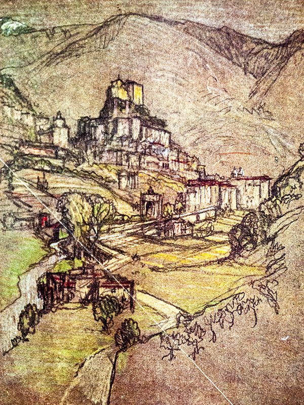 First British edition of this book of travel writing, wonderfully illustrated by Joseph Pennell. Quarto, original cloth, gilt pictorial stamped to the front panel, gilt titles to the spine, top edge gilt. Illustrated by Joseph Pennell with 32 color plates, with tissue guards. In fine condition. An exceptional example.