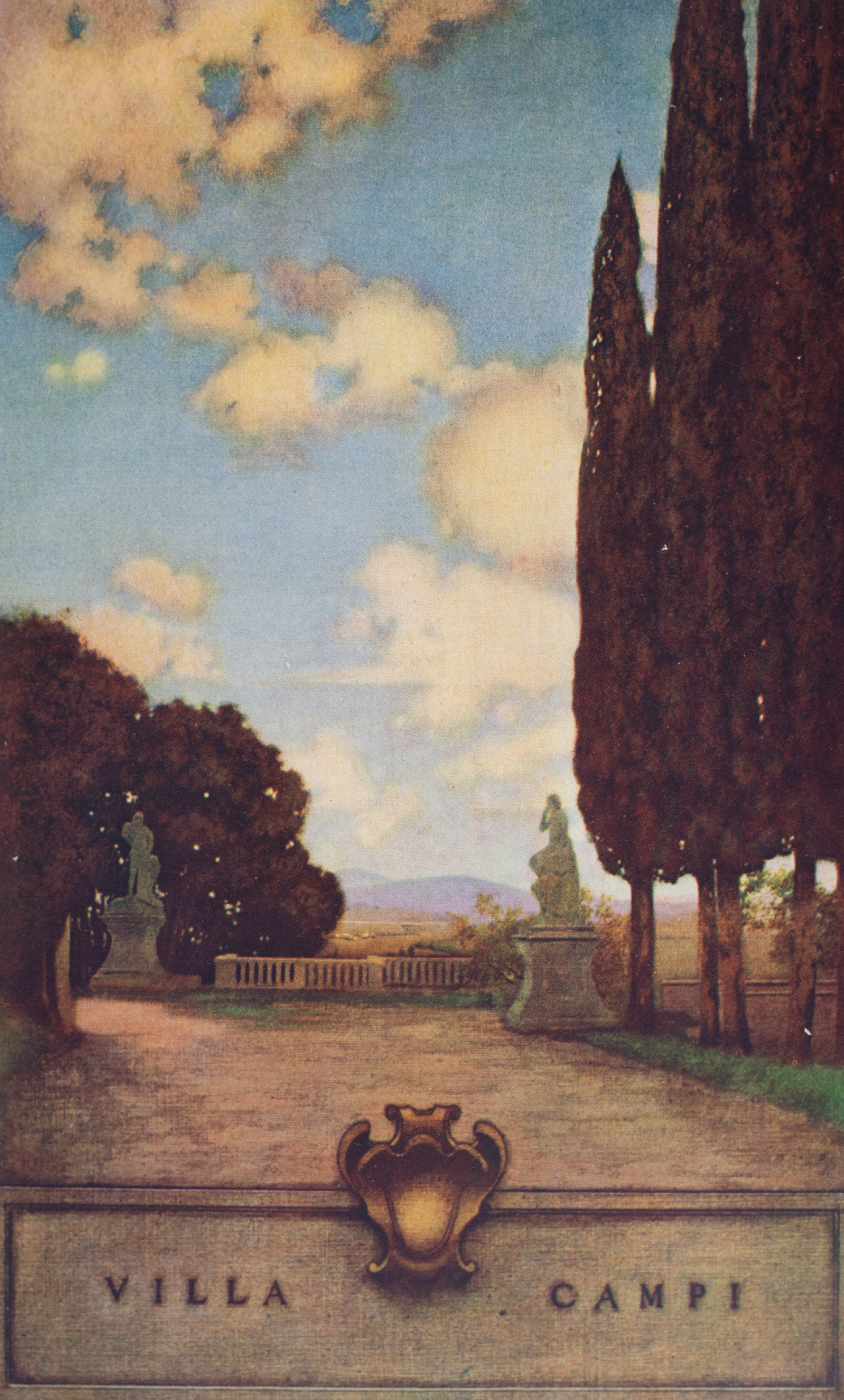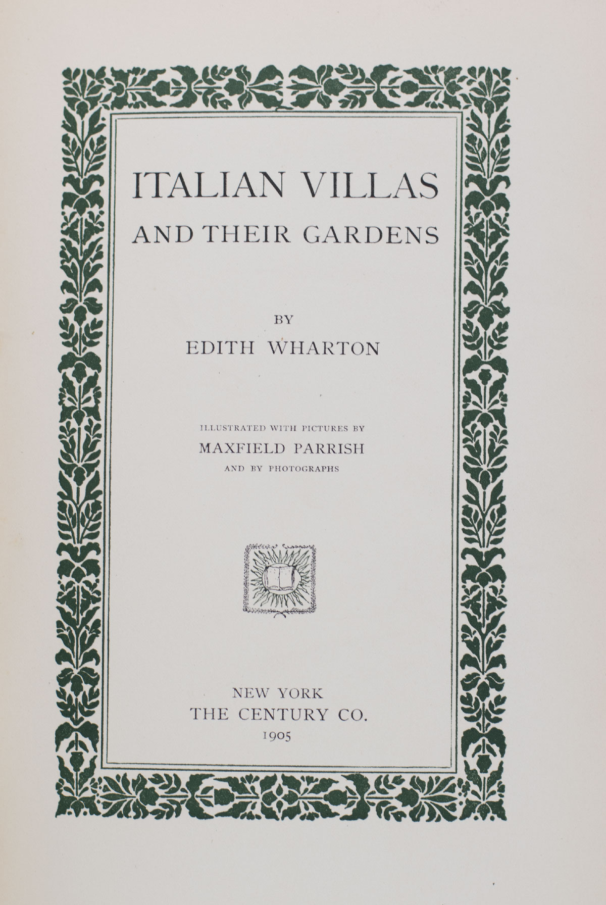 First edition of Wharton's classic treatise on "Italian garden-magic." Quarto, original dark green cloth, top edge gilt. With 45 full-page plates, including 26 illustrations by Maxfield Parrish (15 in color), seven in-text and 19 black-and-white photographic illustrations. In good condition, name to the front free endpaper.