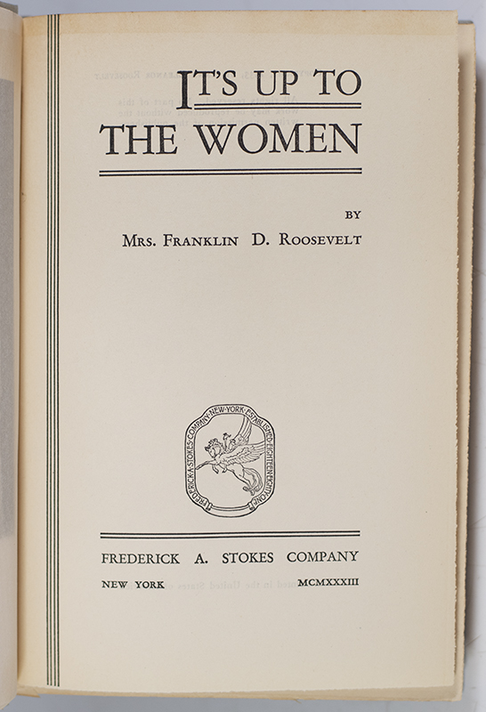 "I think we shall have fulfilled our mission well if when our time comes to give up active work in the world we can say we never saw a wrong without trying to right it": First Edition of Eleanor Roosevelt's Rare First Book It's Up To The Women