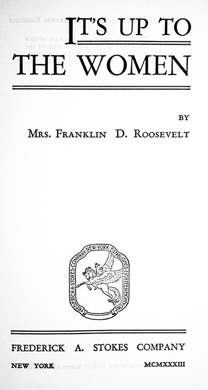In 1933 Eleanor Roosevelt’s It’s Up to the Women exhorted American women to help pull the country through its current economic crisis, the gravest it had ever faced: “The women know that life must go on and that the needs of life must be met and it is their courage and determination which, time and again, have pulled us through worse crises than the present one.”