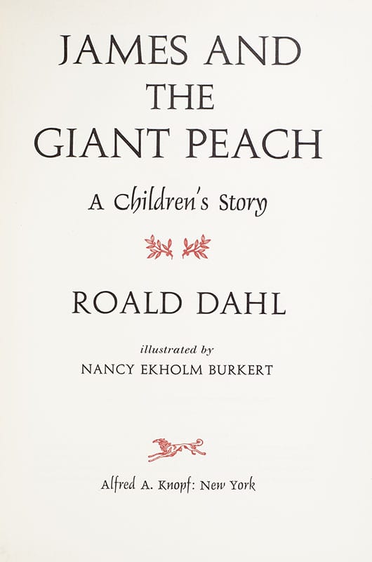 "Come right up close to me and I will show you something wonderful": First Edition of James and the Giant Peach; Signed by Roald Dahl and Illustrator Nancy Ekholm Burkert