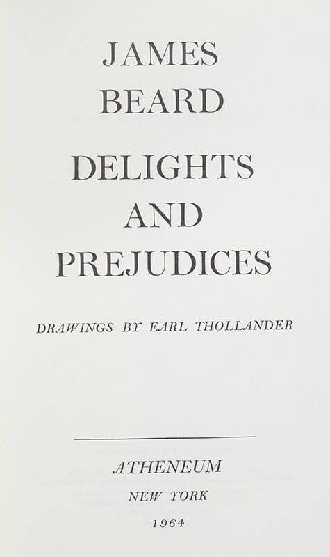 "Good Eating and Cooking": First Edition of Delights and Prejudices; Signed by James Beard