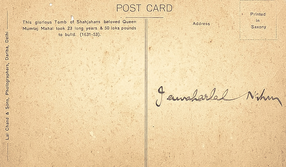 Rare Taj Mahal Postcard Signed by Jawaharlal Nehru
