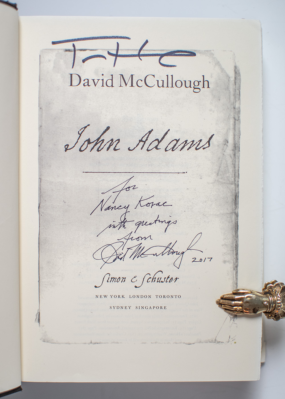 "Our obligations to our country never cease but with our lives": First Edition of John Adams; signed by David McCullough