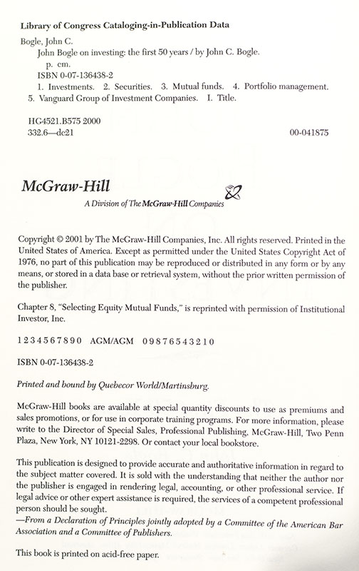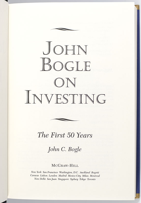 “When there are multiple solutions to a problem, choose the simplest one": First Edition of John Bogle On Investing The First 50 Years; Signed by John Bogle