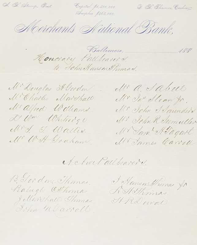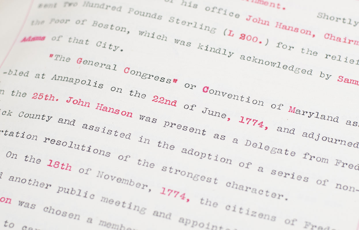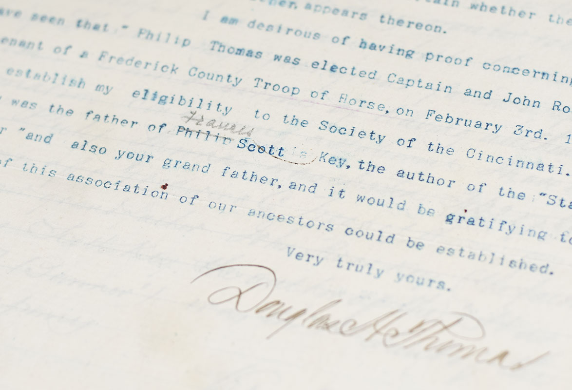 Rare genealogical archive documenting the life and heritage of the first President of the Confederation Congress John Hanson, whose biographers have argued to be the true first President of the United States. The archive is composed primarily of letters, historical records and biographical documents prepared by Hanson's ancestors, most notably several biographical volumes composed by his descendant Douglas H. Thomas who, in his numerous biographical papers, promoted Hanson as the the true first President of the United States. Contents also include biographical accounts of Hanson's father Philip Thomas, and his descendant John Hanson Thomas who served in the American Civil War. In near fine condition. A fascinating archive of first-hand accounts documenting the life, career, and heritage of one of America's least recognized Founding Fathers.