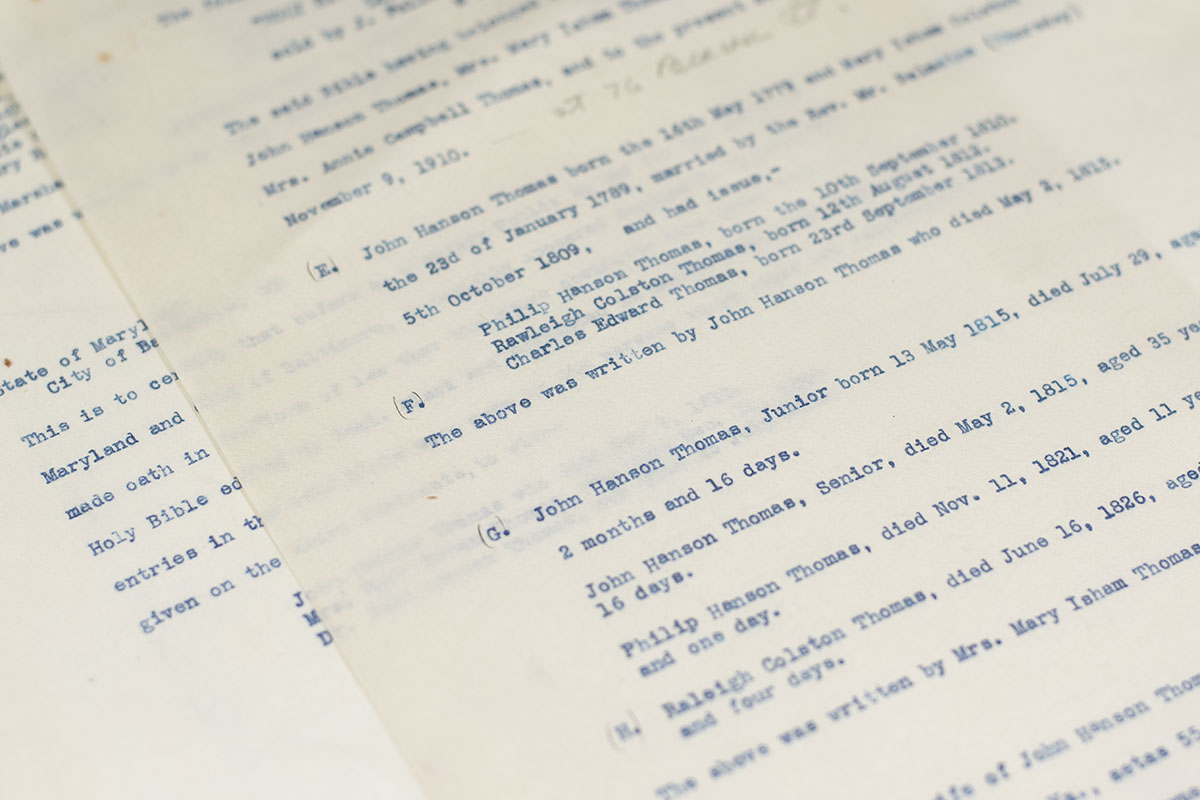 Rare genealogical archive documenting the life and heritage of the first President of the Confederation Congress John Hanson